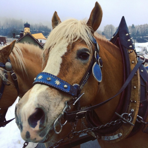 Abfahrt mit Sonntags - Pferdegschirr